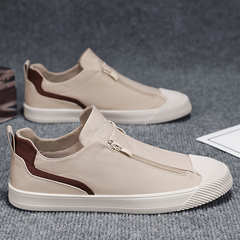 Home Men's Canvas Shoes Men’s Trendy Zip Up Breathable Colour Block Skateboard Shoes, Comfy Non Slip Rubber Sole Durable Sneakers, Men’s Footwear