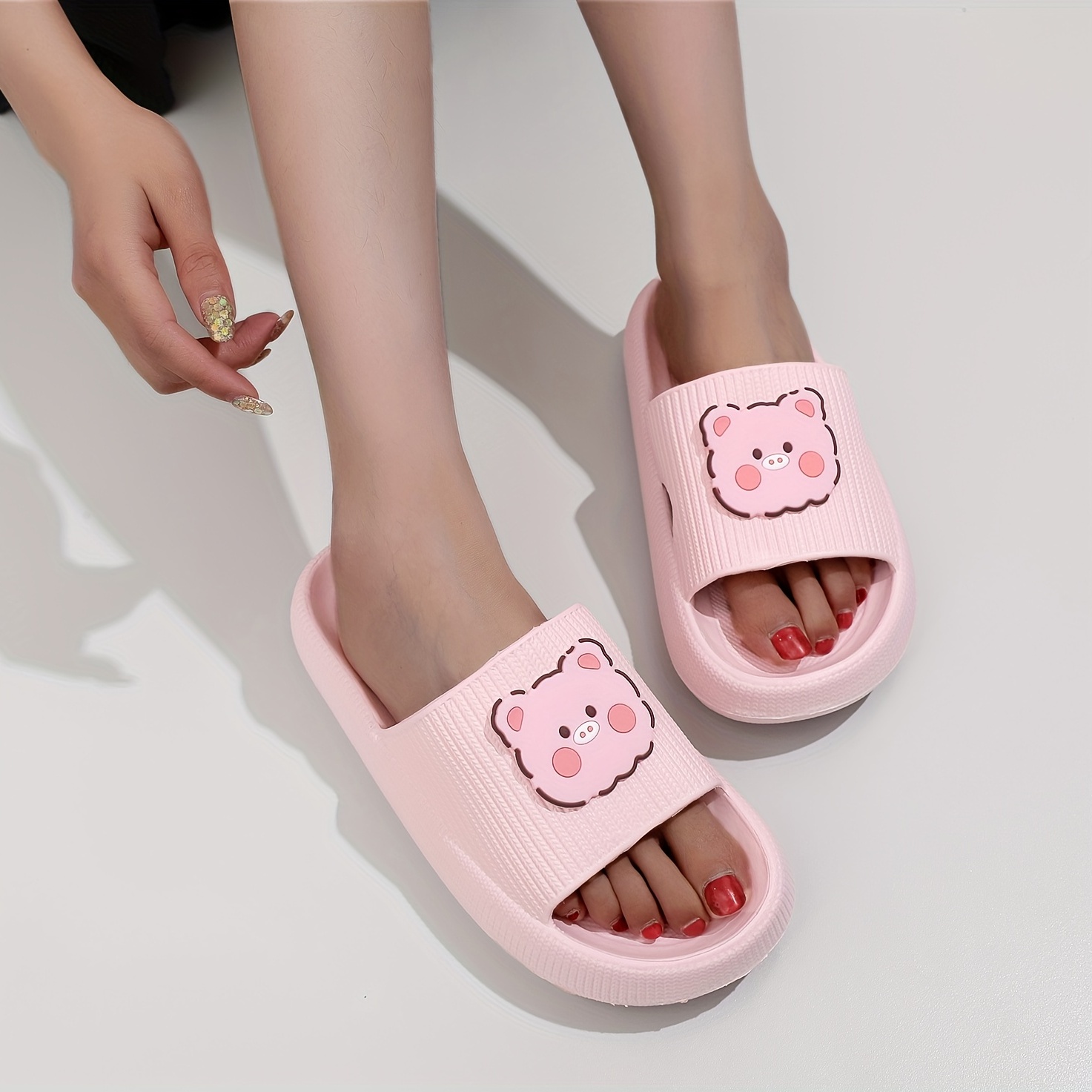 Women’s Kawaii Cartoon Slides, Casual Soft Sole Pillow Slides, Lightweight Platform Shoes