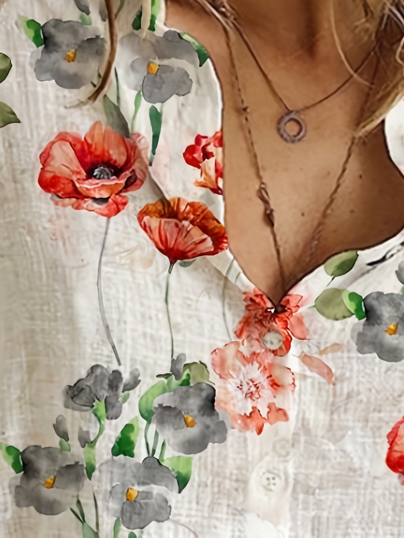 floral print   collar button shirt casual long sleeve shirt for spring fall womens clothing details 2